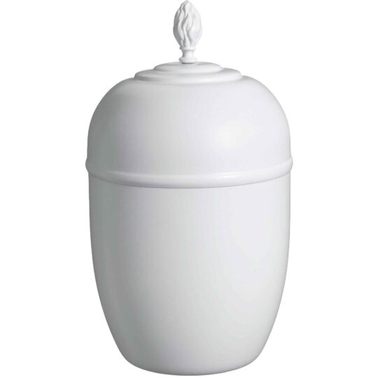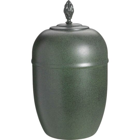 Urna av koppar, finns i vitt och grönt. Kan fås med kors eller fackla som toppdekoration.