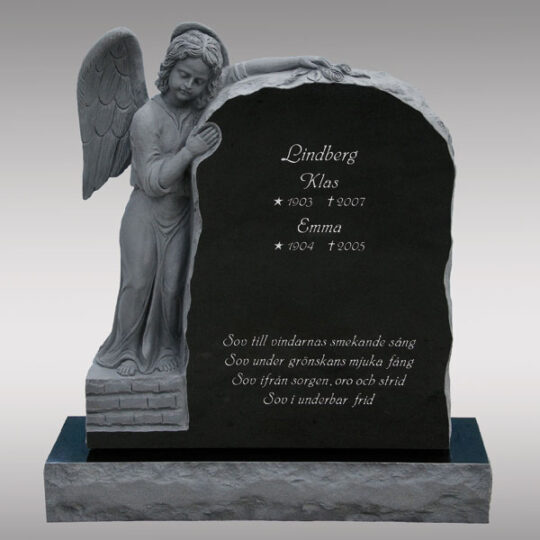 Skulpterad ängelsten Framsida/baksida: polerade Sidytor: råarbetad Skulptur: mattslipad