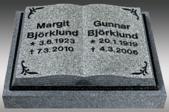 Liggande uppslagen bok Ovansida: polerad/finhuggen Sidytor: mattslipade Fundament: mattslipad