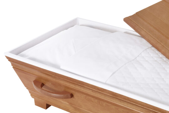 Denna kista är 15 cm längre och 10 cm bredare än standard och passar om den avlidne är över 195 cm.